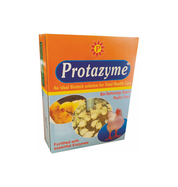 Protazyme is manufactured through fermentation process based on naturally available commodities such as Sugar Cane, Corn Starch etc. This unique salt formulation suppresses the growth and multiplications of enteropathogenic bacteria and promotes growth and colonization of the beneficial microorganism in gut. It is an ideal Biotech solution for total health care for poultry feed.